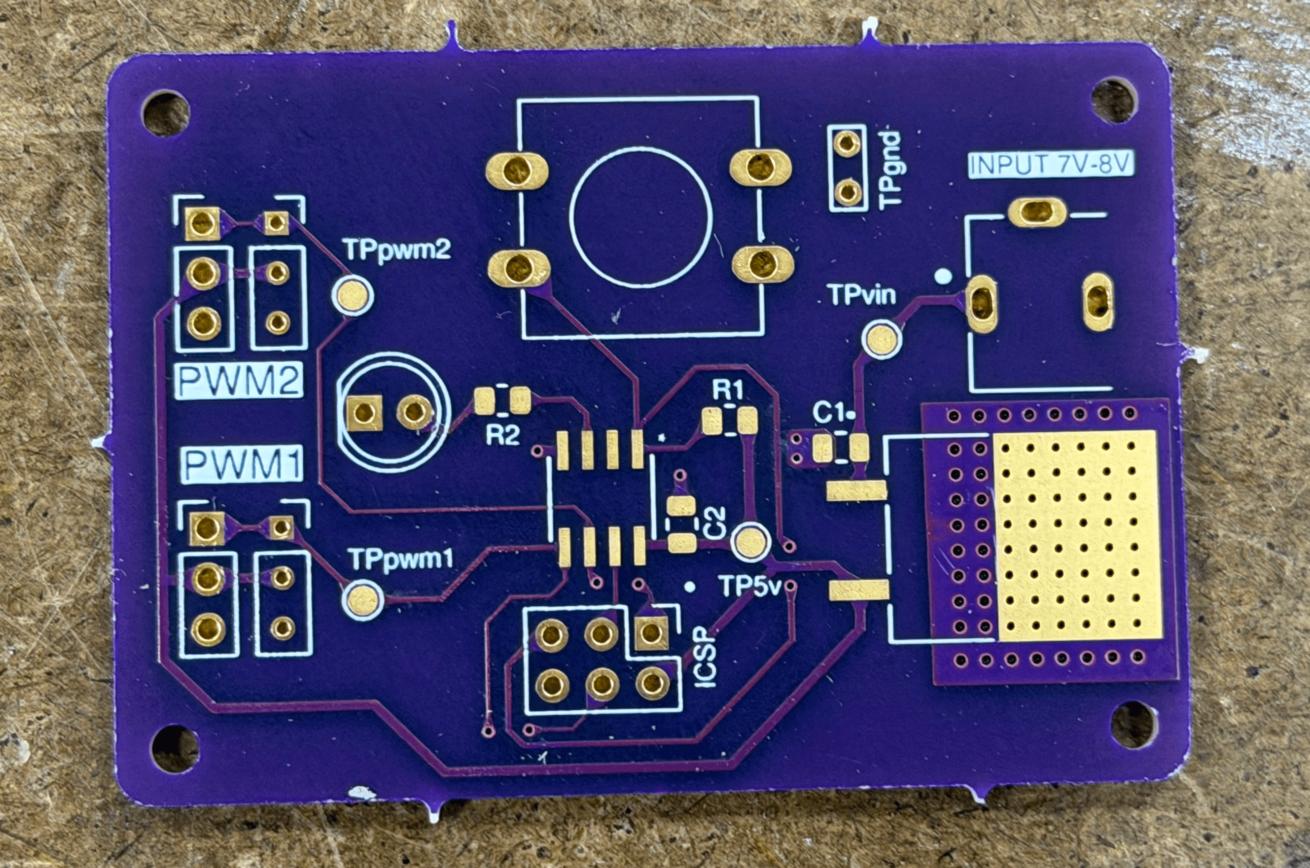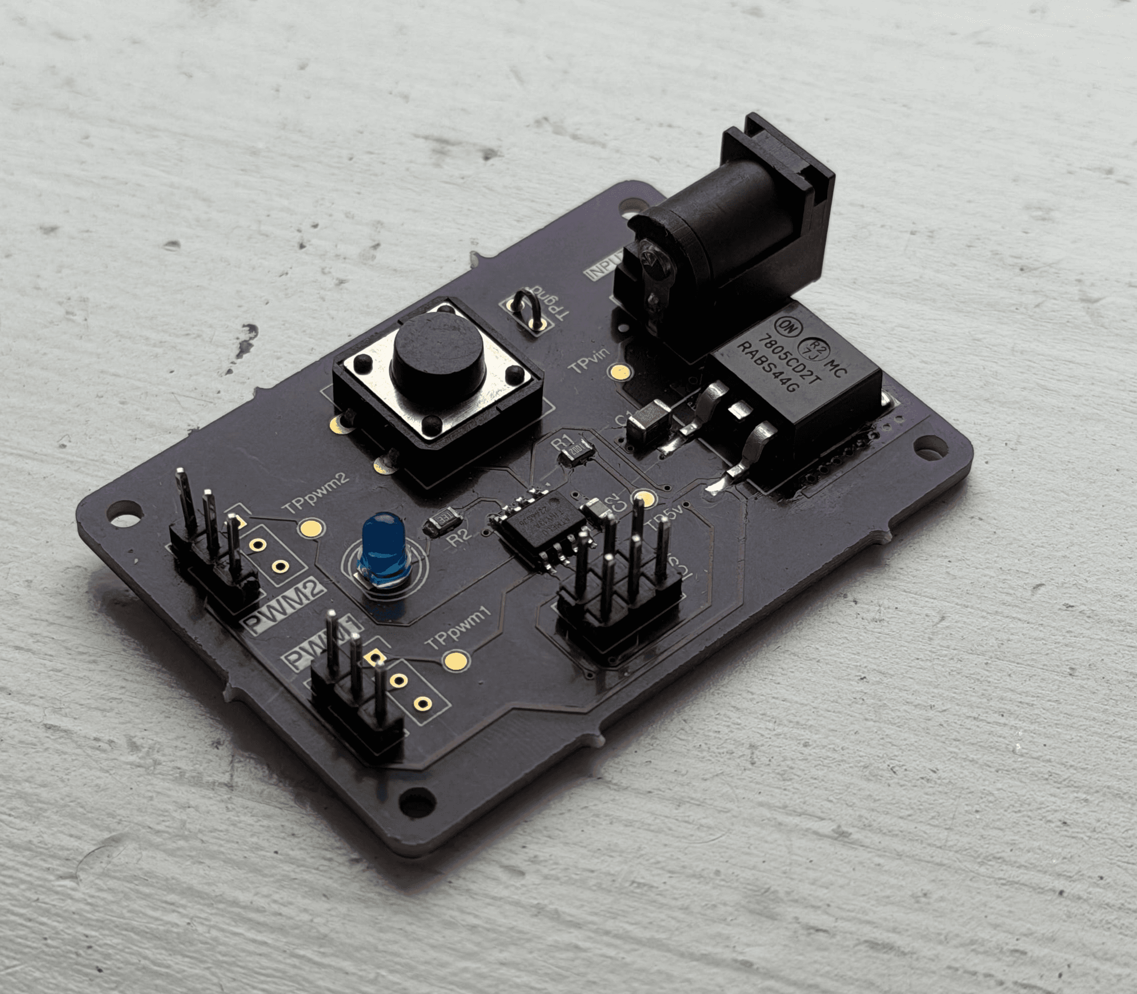 Here is the finished PCB. It was interesting to feel how the heat from the linear regulator spread out across the whole board.