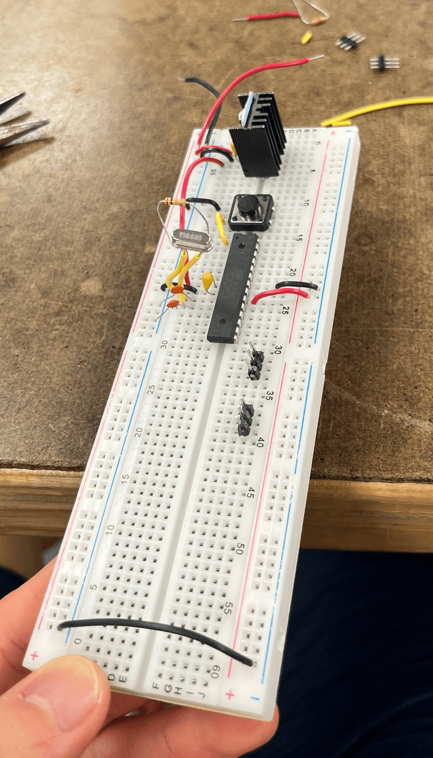 I initally used an ATMEGA328P and a spare 5V regulator to test proof of concept.